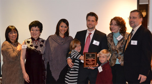 刘红博士(左二)与获奖得主、西北大学乙肝专家Sean Kopper(右三)及其家人合影
