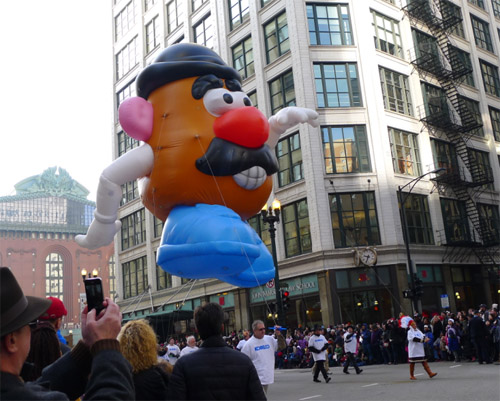 11月22日感恩節的早上,麥當勞快餐館在芝加哥市中心舉行第79屆感恩節大遊行,當天的氣候和煦微風,水銀針攀向華氏62度;成千上萬的市民與外地遊客,于早上7時左右即帶備了摺椅,毛毯,熱咖啡,熱可可等看遊行必備物,拖男帶女的一家大小等候在州街兩旁最有利的地點,耐心的守候著遊行隊伍的出現。