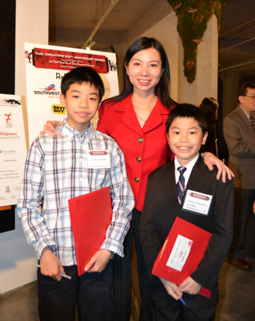 在晚宴开始之前的社交联谊时间,周氏兄弟艺术中心大厅内人流熙熙,积极支持社区公益事业的各界华裔社区人士、工商业主与新老朋友欢聚一趟。华咨处西厨训练班的学员们为大家提供精美的点心美食,负责晚宴筹款的志愿者小朋友们,则尽心尽职为向兜售晚宴抽奖奖券,从小就开始体验社区公益筹款的志愿者工作。