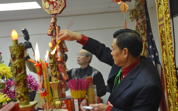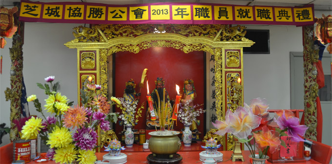 两位新主席带领新届职员拜祭关公