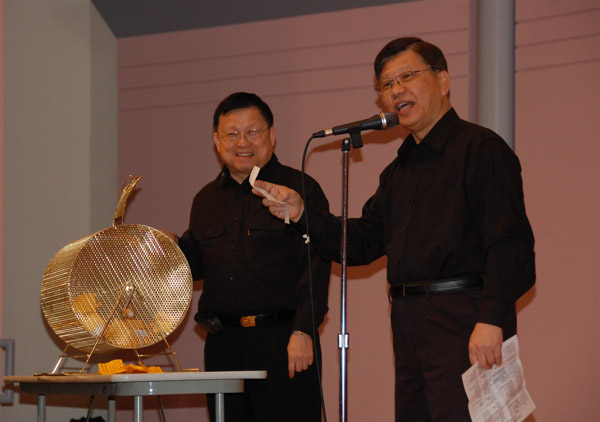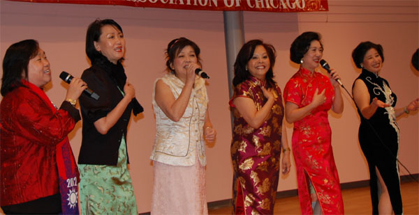 本次联欢晚会,在刚刚落成的侨教中心大礼堂举行,驻芝加哥台北经济文化办事处葛葆萱处长,郭圣明副处长,曾伟明副处长,侨教中心主任阎树荣,中华会馆董事长区一平等各界嘉宾与大家一起出席当日的活动。