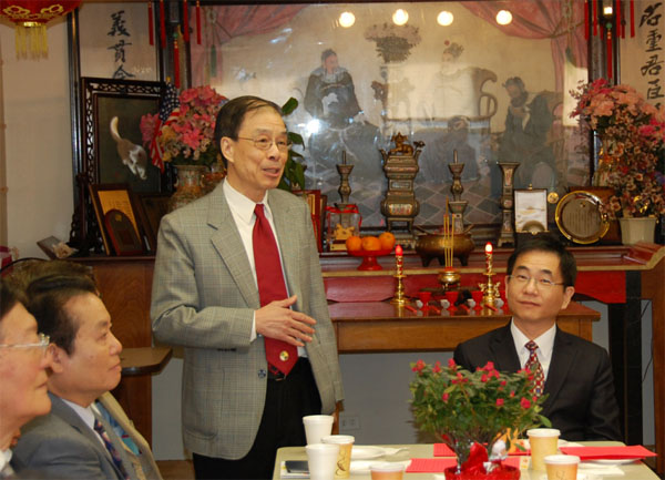 台北经文处葛葆萱处长、曾伟明副处长,侨教中心副主任林珖舞,中华会馆主席徐学明,大芝加哥侨学各界新年晚会(UNITY 2013)总干事梅施美瑛,侨务委员赵汝爽、赖健治、区一平等一行,1月2日先后拜访了昭伦公所、伍胥山公所、梅氏总公所、黄氏宗亲会、龙冈亲义公所、李氏公所、遡源公所、余风采堂。