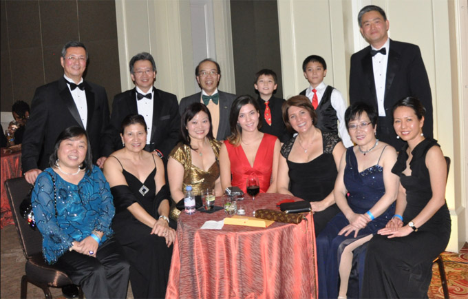 来自芝加哥地区的亚裔社区人士等嘉宾在全美亚裔社区领袖庆祝奥巴马总统就职舞会上合影留念