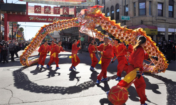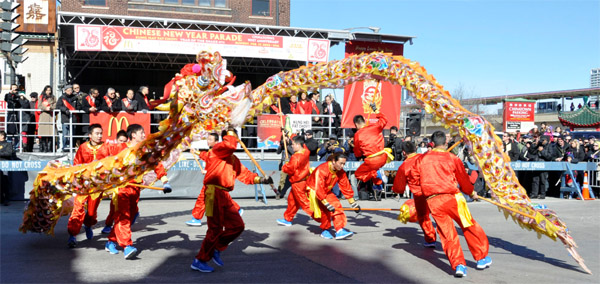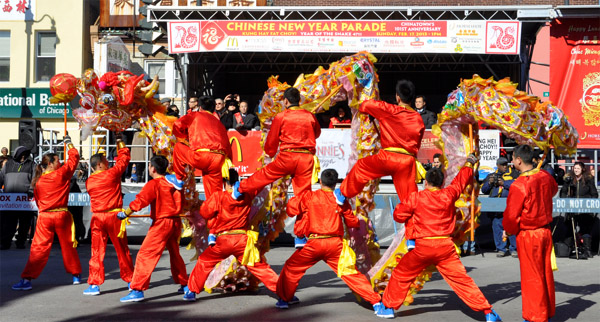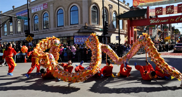 中华第一龙在华埠新年游行时的精彩舞姿