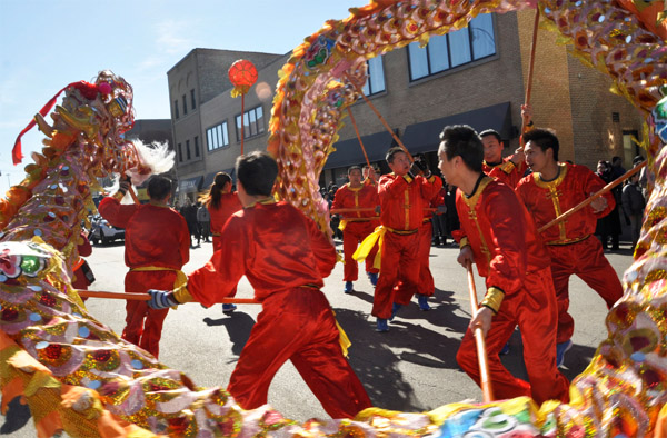 2013芝加哥中国城春节游行圆满落幕,重庆铜梁龙舞团为本届春节游行增光添彩,让观看游行的近四万人亲眼领略“中华第一龙”的雄姿与风采。华埠特别活动委员会日前特设宴答谢铜梁龙舞团全体人员。