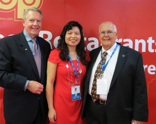 李瑪瑛(中)与加州港区Newark 市市长Alan L. Nagy(右)及前市长(左)合影留念。