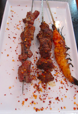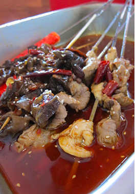 再说说蜀国烤鱼,卖相不错,和中国城另一家麻公辣婆的比起来,感觉味型要稍微厚实,鱼要入味一些。就是一大盆鱼放在一小桌上,就餐过程不是很自在。烤鱼配菜倒是一个不错的选择,选项和大部分的串串香选项相同。