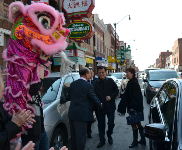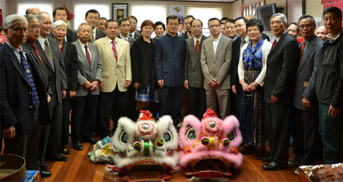 赵卫平总领事一行与芝城龙冈公所职员合影留念