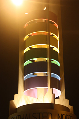 走出剧场的时候路灯已经大亮,那彩虹灯柱尤其格外醒目-据说,