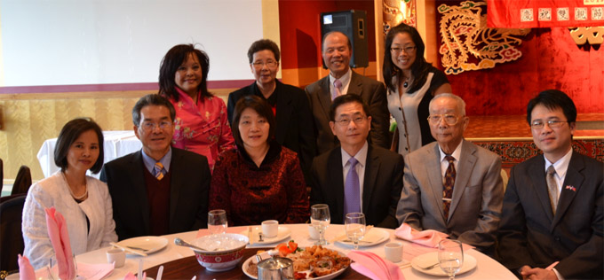 驻芝加哥台北经济文化办事处葛葆萱处长、郭圣明副处长,侨教中心主任阎树荣,中华会馆主席徐学明,大芝加哥台湾同乡联谊会会长项邦珍等各界嘉宾出席了当日午餐会。当天的节目由耆英俱乐部负责人黄仲山主持。