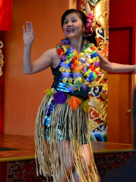 在老人家们享受午餐的同时,台湾黎音合唱团为大家表演精彩歌舞。合唱团成员在欧纯妃、舒隆瑞的指导下,演唱《甜蜜蜜》、《相思河畔》、《外婆的澎湖湾》等经典歌曲,为午餐会带来欢欣热闹的氛围。该合唱团成员彭惠贞,当天还表演火辣夏威夷草裙舞,并邀请耆英俱乐部负责人黄仲山伴舞,共同演绎夏威夷浪漫风情,将全场气氛推向高潮。耆英俱乐部舞蹈组的成员们,当天也隆重推出韵律舞,老人家们隆装登台,其乐融融。