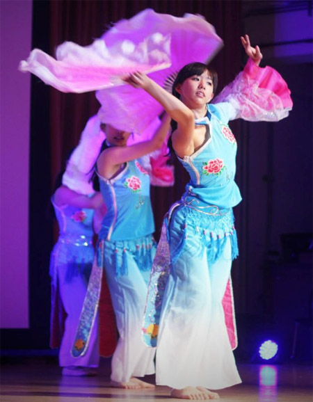 芝加哥侨学网报道】西北大学台风舞团(Typhoon Dance)5 月24日隆重举办第四届舞蹈演出《花样年华》(Age of Blossom),牧笛悠扬桃花扇,万紫千红俏春风,精彩的表演让西北大学的校园刮起一场充满青春活力的中国文化之风。参加此次舞蹈演出的30多位西北大学中国留学生,虽然没有一位是舞蹈科班出身,但她们的精彩演出丝毫不逊色于任何一场专业的舞蹈演出。