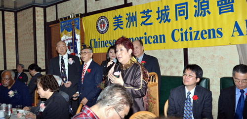 会长梅浩泉(John Moy)感谢大家的支持。他声称同源会成立于1895年,总会在三藩市,美国各地都有分会.会员超过有2300人。 同源会是全美最早的民权组织之一,宗旨是协助海外及为社会服务,同时代表反抗排华歧视等重 任。