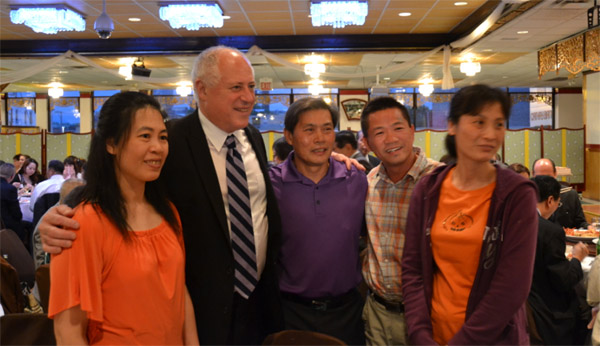 州长与华裔支持者们合影,右三为工商业主赵培业