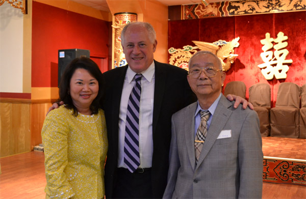 芝加哥侨学网报道】伊州现任州长奎恩(Pat Quinn)已宣布将在2014年州长选举中竞选连任,芝加哥华裔社区6月25日特别在北华埠举办支持奎恩州长竞选连任筹款餐会。众多华裔工商业主出席,赞扬州长对移民改革的支持,感谢州长移民社区利益的重视。
